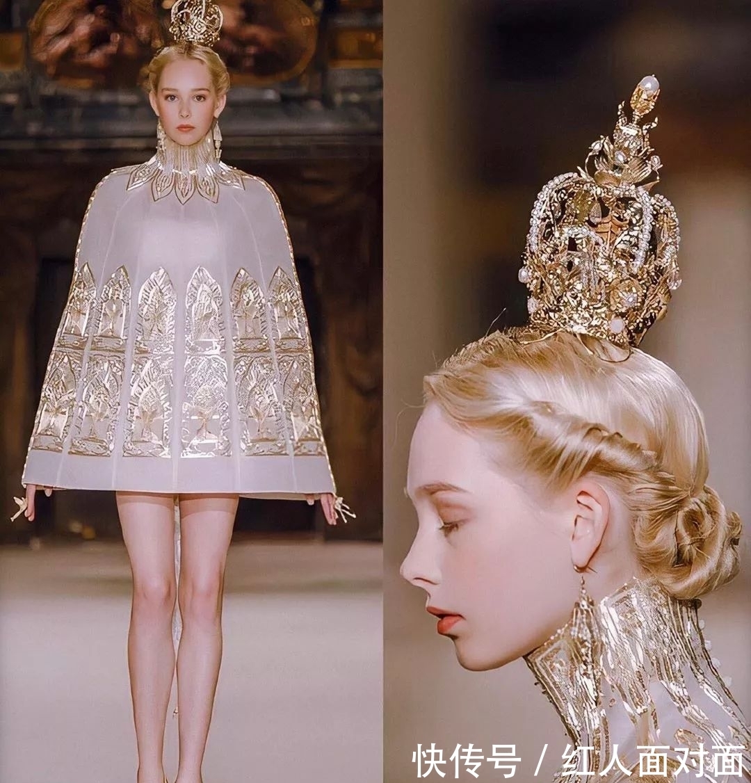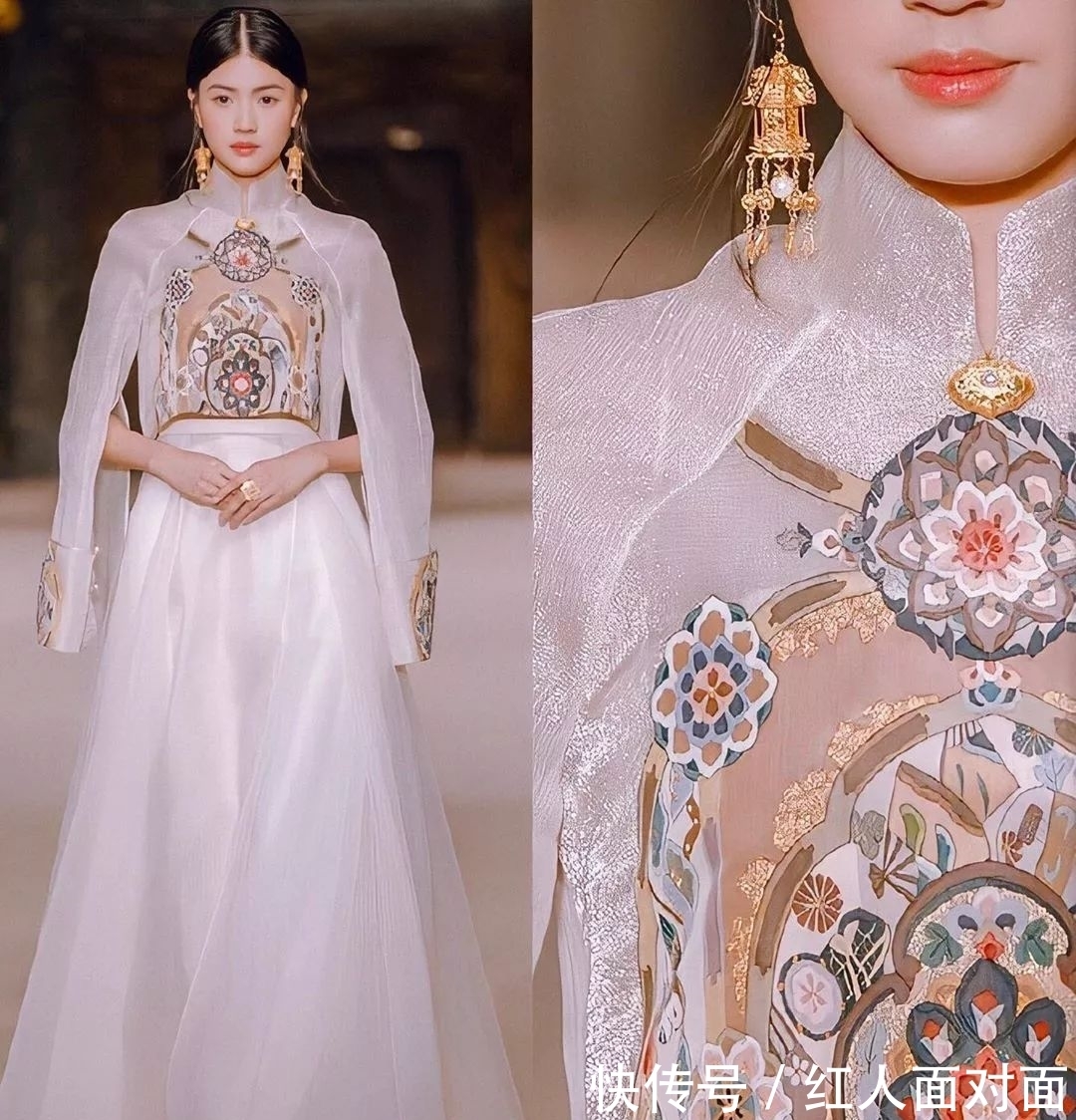 当模特穿着敦煌壁画元素的高定时装